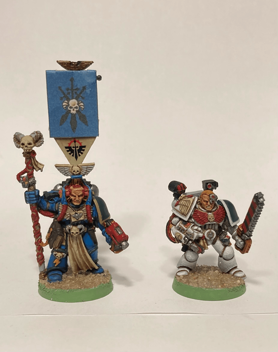 Epistolary Kaelon and Apothecary Malachai join my 4th company strike force this month, bringing formidable psychic powers and expert knowledge of astartes physiology to bear on the battlefield.  In my last battle with the Wachtmeister (read about it here) I saw how versatile and deadly a level 3 psyker could be in 2nd edition.  Adding Kaelon to my forces will give me another option to manifest the potent powers of the warp against my foes.  Next game I will try taking at least two librarians to guarantee I have enough psychic power cards per turn to really do some damage.  Apothecary Malachai does not lend a lot to the game in 2nd Ed necessarily but I loved painting this characterful sculpt that I have owned for at least twenty years.  FInally painting those models you’ve owned forever but have been intimidated to put some colors on is part of what makes the 40K2ndAC so much fun.  For more pictures and some 2nd edition action in the form of battle reports be sure to check out my blog at 1st Legion Chronicles.