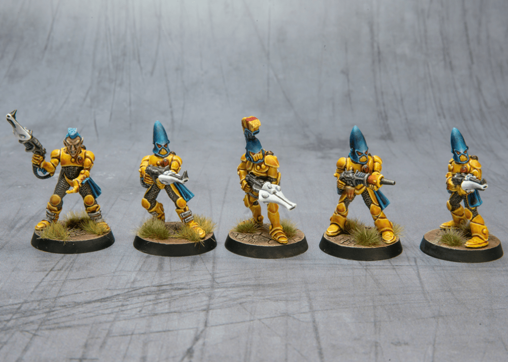 This month has been very hard – lots of deadlines and many late nights trying to keep clients happy has meant I hardly picked up a paintbrush for the last fortnight. I have just managed to scrape a few hours over the last weekend to finish up the Guardian squad. I’m really pleased with these – I think the helmets have come out with the right balance of highlight vs the dark blue that is the usual Iyanden colour. Looking forward to getting these on the table – I’m really feeling the template action from the flamer!!!