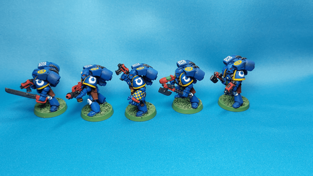 Yet again finishing at the 11th hour (after starting at the 10th hour..) I have managed to get my 5 assault squad members done for this slice! I found it was easier this time around than the first 5 since I already knew what I was doing the best order to lay the paint and decals on.