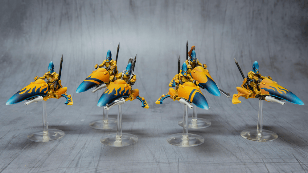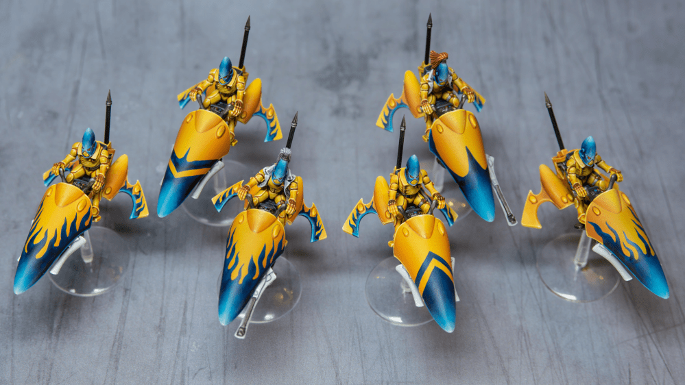 And we’re done!!! The final squad of six Guardians riding Jetbikes are finished!!! Four with twin shurikens and two shriekers with shuriken cannons.